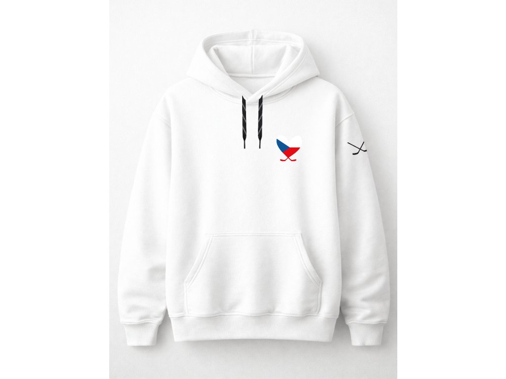 Pohodlná, stylová unisex mikina s hokejovou tkaničkou a 3D semiš hokejovým srdcem v české trikolóře. 🇨🇿